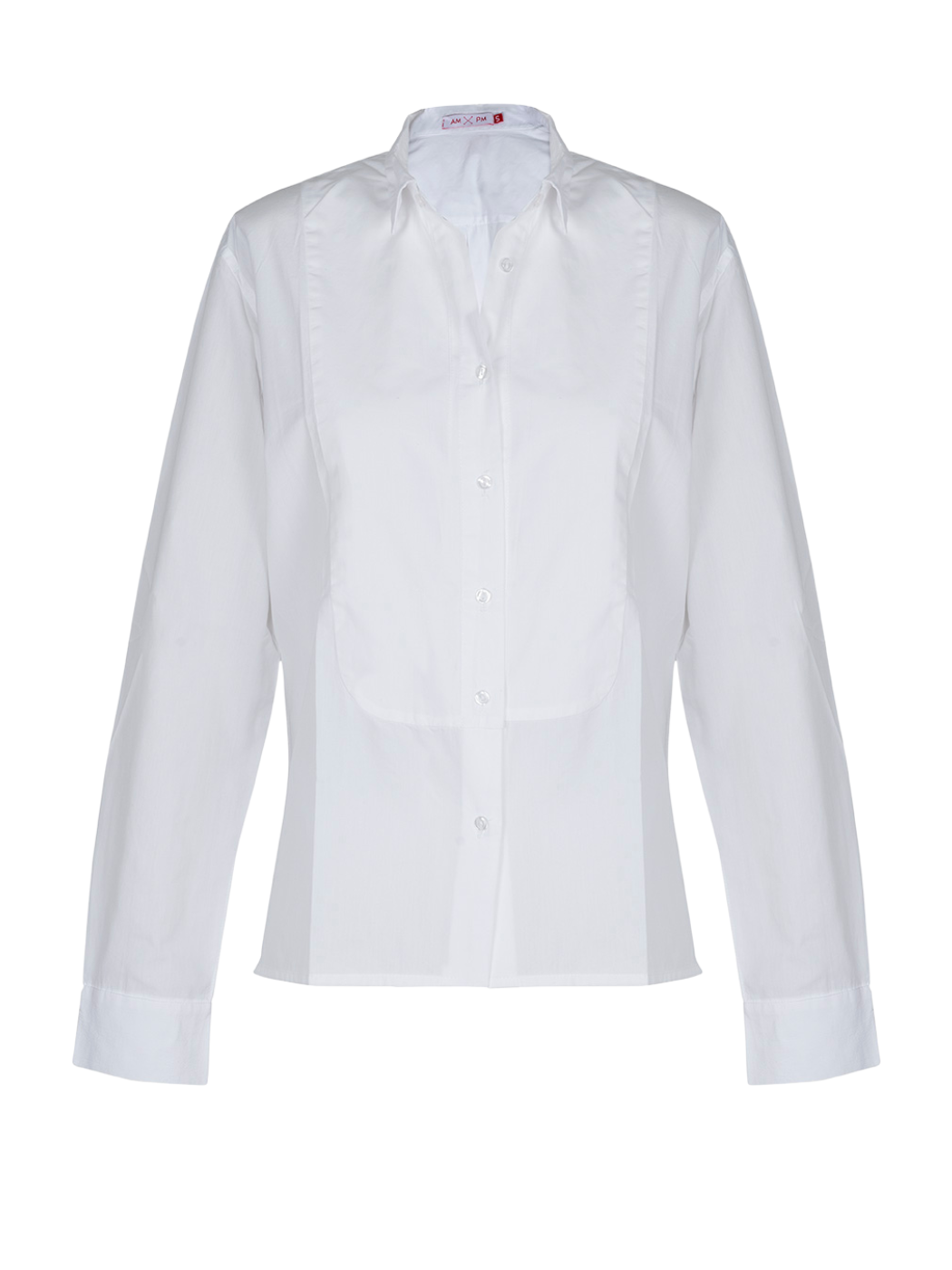 Classic white cotton button-down shirt with a smoking bib detail. Tailored and crafted in our atelier from premium cotton.