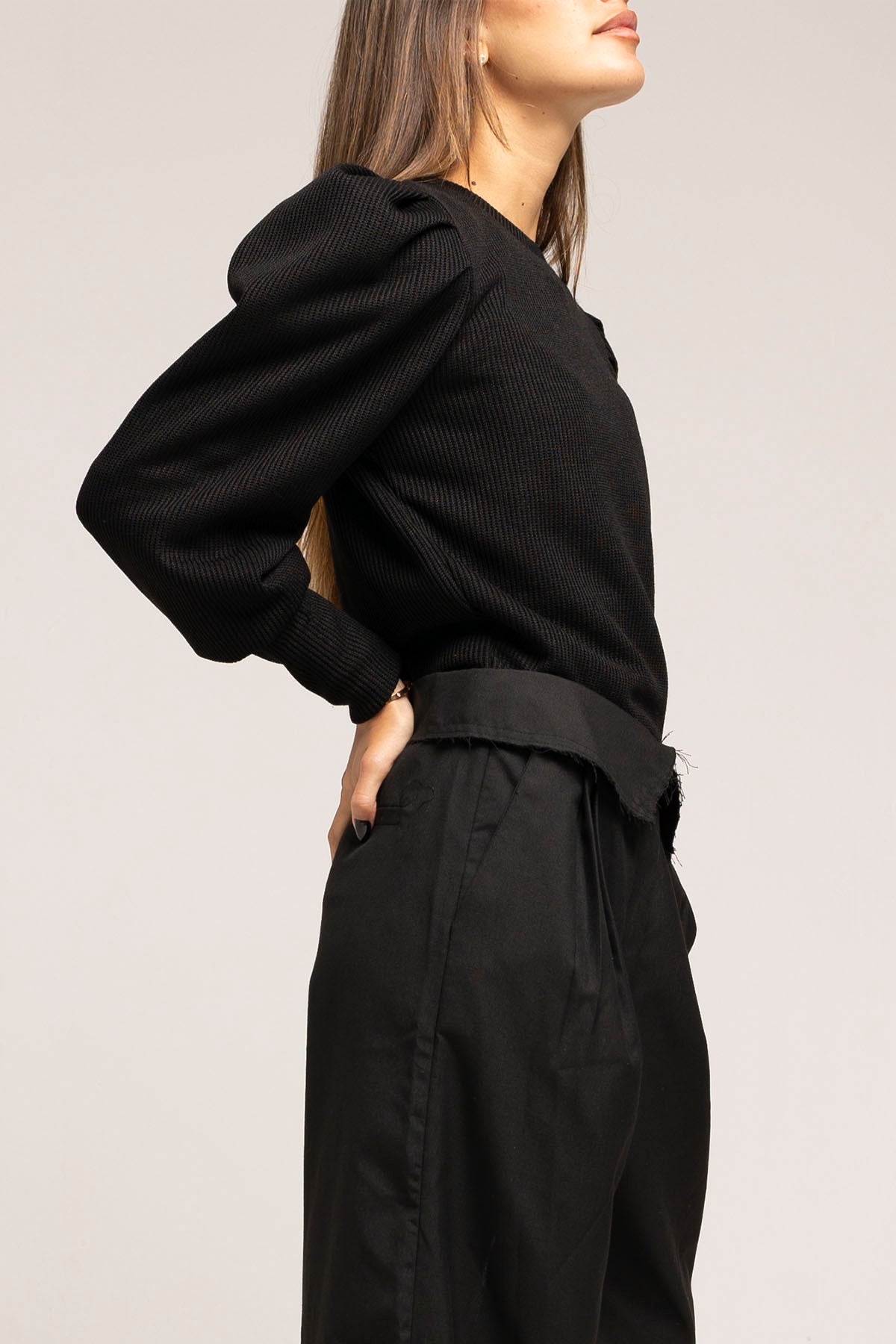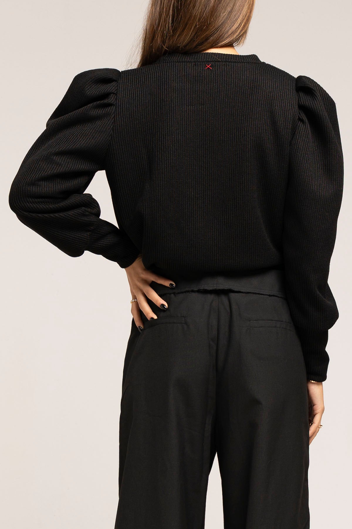 Ribbed sweater with a structured feel. Designed with puff sleeves and defined shoulders for a clean, sculpted silhouette.